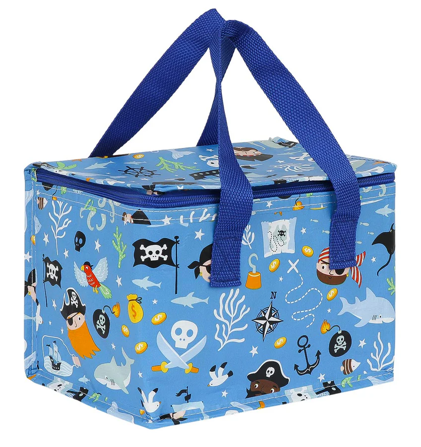 Ce sac isotherme bleu à motif pirates est idéal pour garder déjeuner et boissons au frais. Il offre suffisamment de place pour notre boîte à bento, des en-cas, une bouteille d’eau et un fruit. Fabriqué en plastique recyclé, il est idéal pour les repas légers.