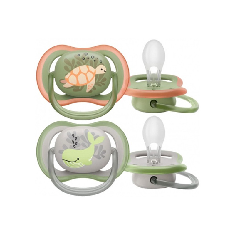 Avent Ultra Air 2 Sucettes Orthodontiques 6-18 Mois – Couleur : Baleine et Tortue