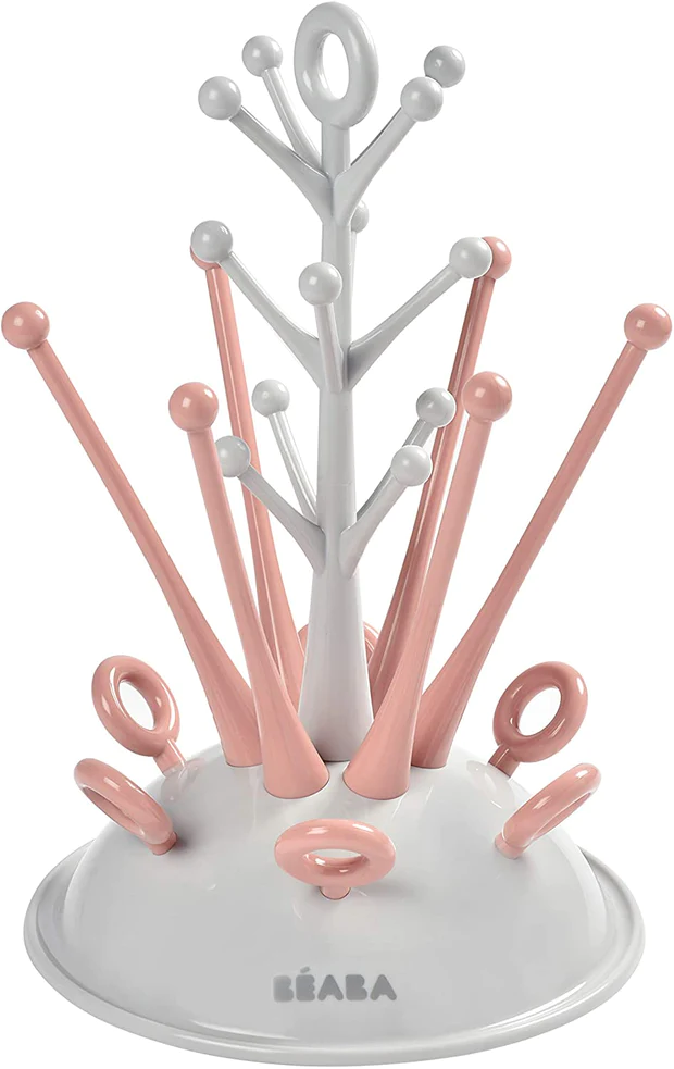 BÉABA, Egoutte-biberons Arbre, Grande capacité 6 biberons et accessoires, Bac de récupération d’eau amovible, Pratique, Design astucieux, Nude