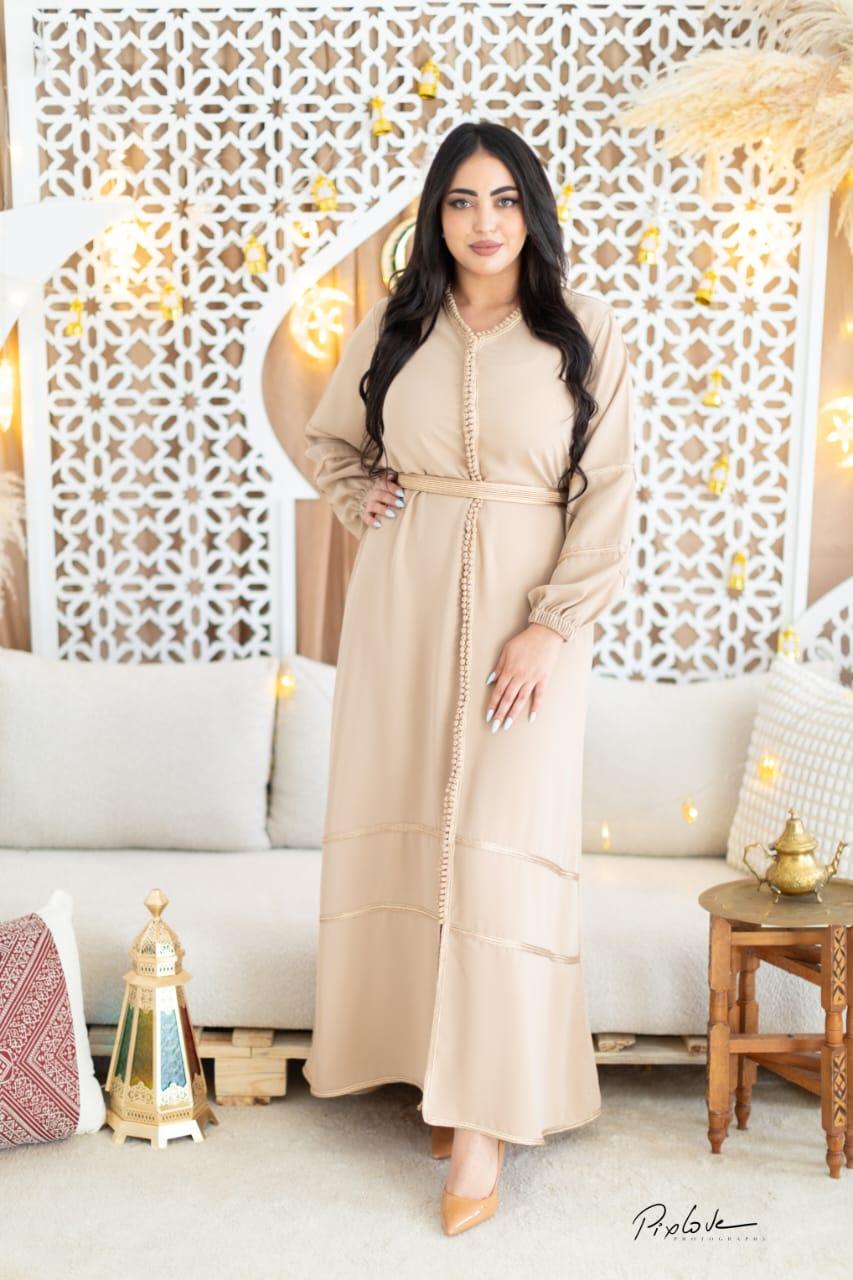 Caftan robe ceinturé en crêpe avec mejdoul skalli avec aqade doublés
