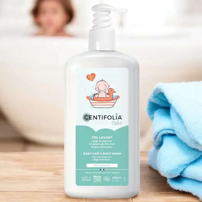 Le gel lavant bébé Bio de la marque Centifolia nettoie en douceur la peau et les cheveux de bébé sans les assécher.