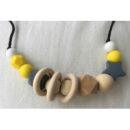 Collier d’allaitement et portage en bois et silicone Jaune et gris