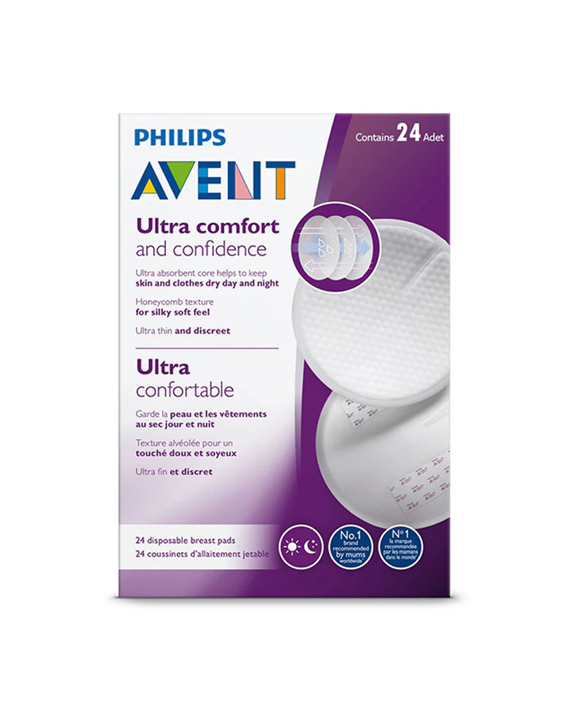 Les coussinets d’allaitement jetables Philips Avent vous accompagnent tout au long de votre période d’allaitement. Grâce à leur texture alvéolée, à leur couche ultra-fine et ultra-absorbante ainsi qu’à leur design anti-fuites respirant, ils sont confortables et vous laissent la peau sèche de jour comme de nuit.
