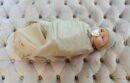 Couverture d’emmaillotage pour nouveau-né 100% coton + bonnet Beige pastel