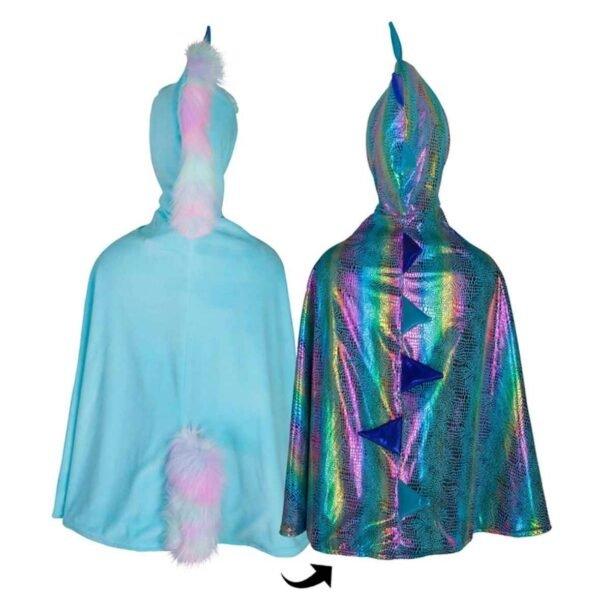 Cape réversible avec double face : licorne irisée couleur arc-en-ciel et dragon, de la marque Great Pretenders.