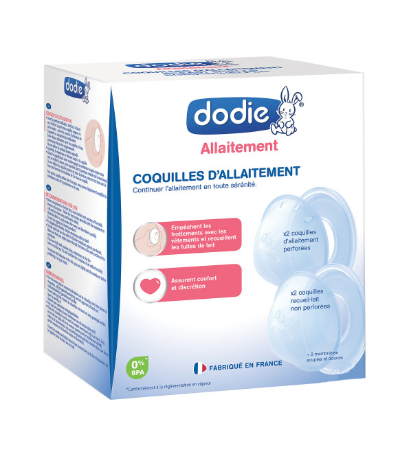 - 2 coquilles non-perforées pour recueillir les écoulements spontanés du sein et éviter les frottements