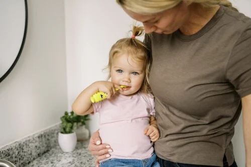 Une brosse à dents spécialement conçue pour les tout-petits facilite les soins quotidiens des dents des enfants.