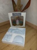 Ensemble tenue de naissance Bleu(Gilet doublet+Pantalon+Bavoir+Gants +Bonnet)