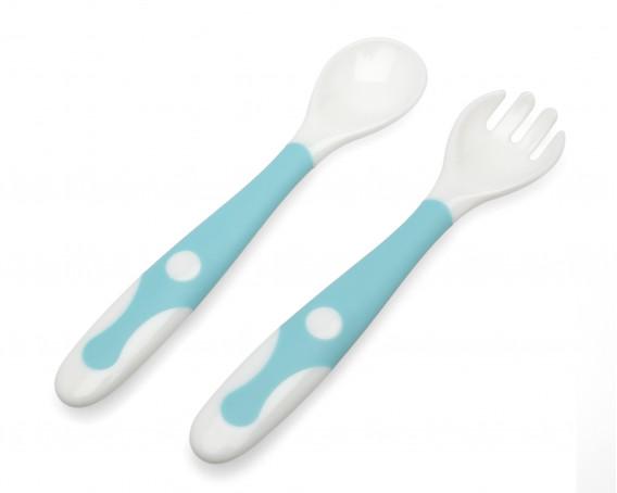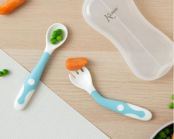 KIOKIDSSET DE CUILLÈRE ET FOURCHETTE POUR ENFANT AVEC BOÎTE BLEU (EMBOUT FLEXIBLE)
