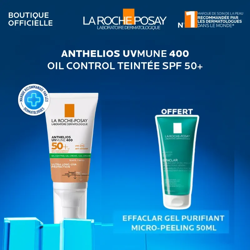 La Roche-Posay Anthelios UVMUNE 400 Gel-Crème SPF50+ Teinté + Gel Effaclar micro peel 50ml offertosay Mela B3 Pack