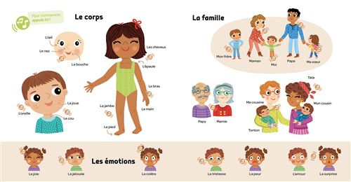 Un livre conçu spécialement pour permettre à l’enfant de découvrir ses premiers mots de façon ludique, avec 500 mots lus et 50 bruits !