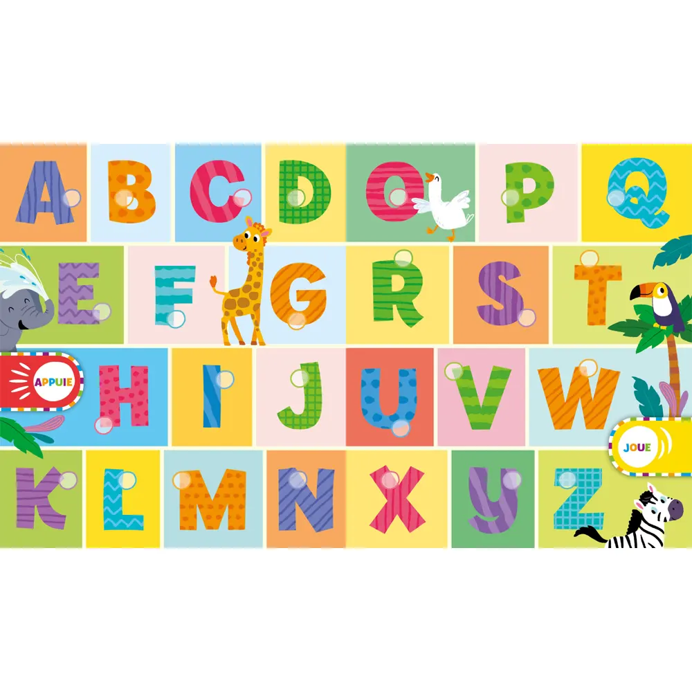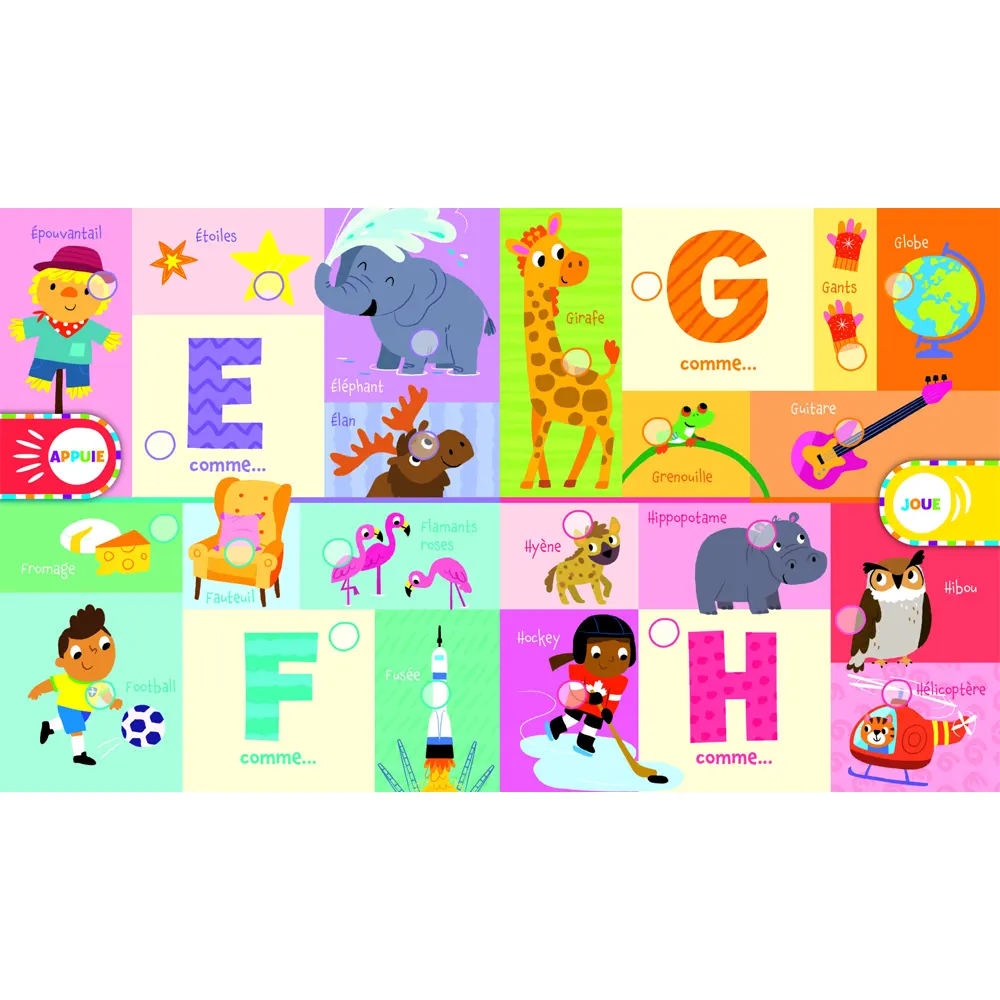 Ce livre interactif propose aux jeunes enfants plus de 160 puces sonores pour découvrir les lettres de l’alphabet et enrichir leur vocabulaire. Grâce à des jeux de questions/réponses, ils apprennent de nouveaux mots tout en s’amusant. En fin d’ouvrage, une double-page récapitulative permet d’écouter les 26 lettres de l’alphabet. Un outil ludique et éducatif pour accompagner l’apprentissage des premières notions de lecture.