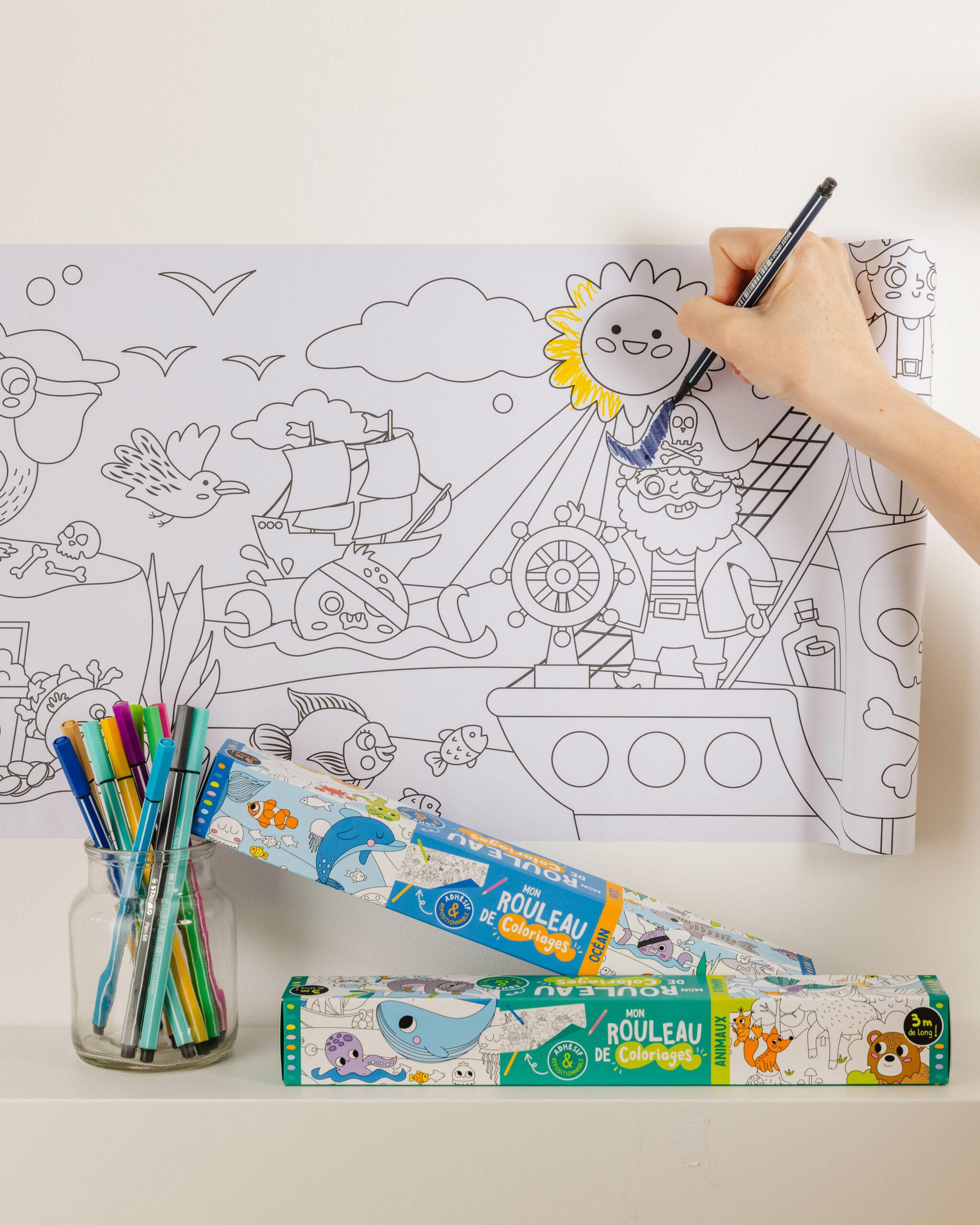 Ce rouleau de coloriages de 3 mètres de long invite les jeunes enfants à partir à la découverte des animaux dans leur habitat naturel. Les illustrations adorables sont remplies de détails. Le papier adhésif se fixe sur une table, une vitre ou un mur et on peut le repositionner comme on veut. Colorier à plusieurs lors d’une fête d’anniversaire, ou découper pour colorier une scène, chacun exprime sa créativité comme il lui plaît !