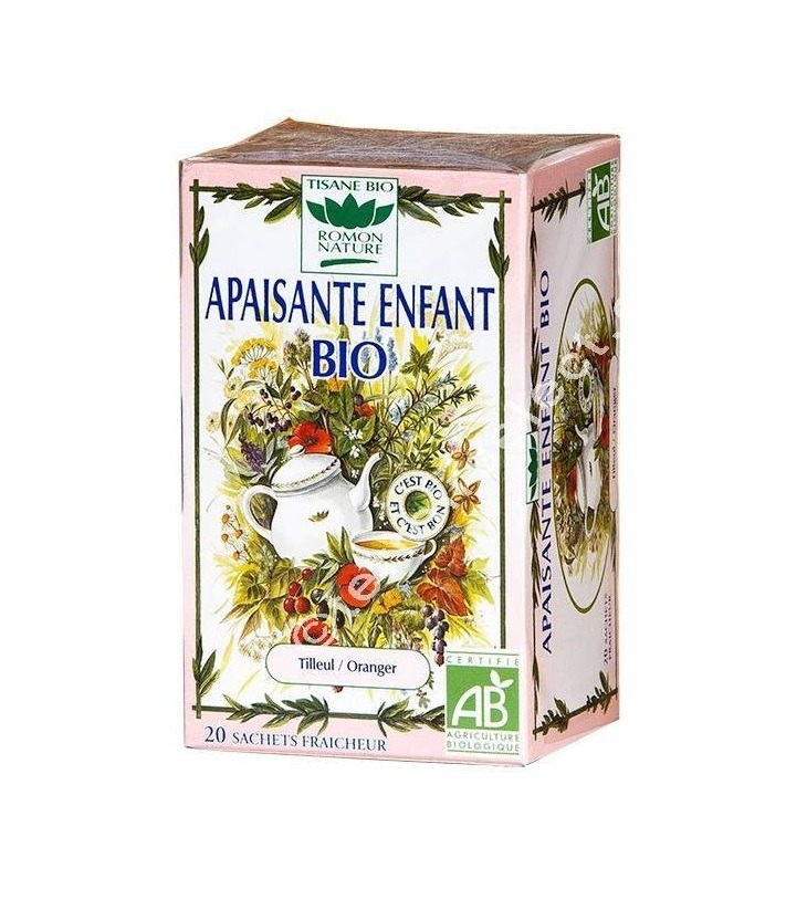 Cette délicieuse tisane biologique apaisante enfants 20 sachets Romon Nature est composée de tilleul bio (60%) et d’oranger bio (40%).