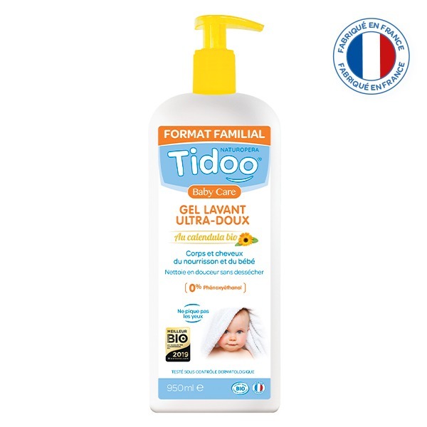 Découvrez le Gel lavant ultra doux 2 en 1 au Calendula 950 ml de Tidoo !