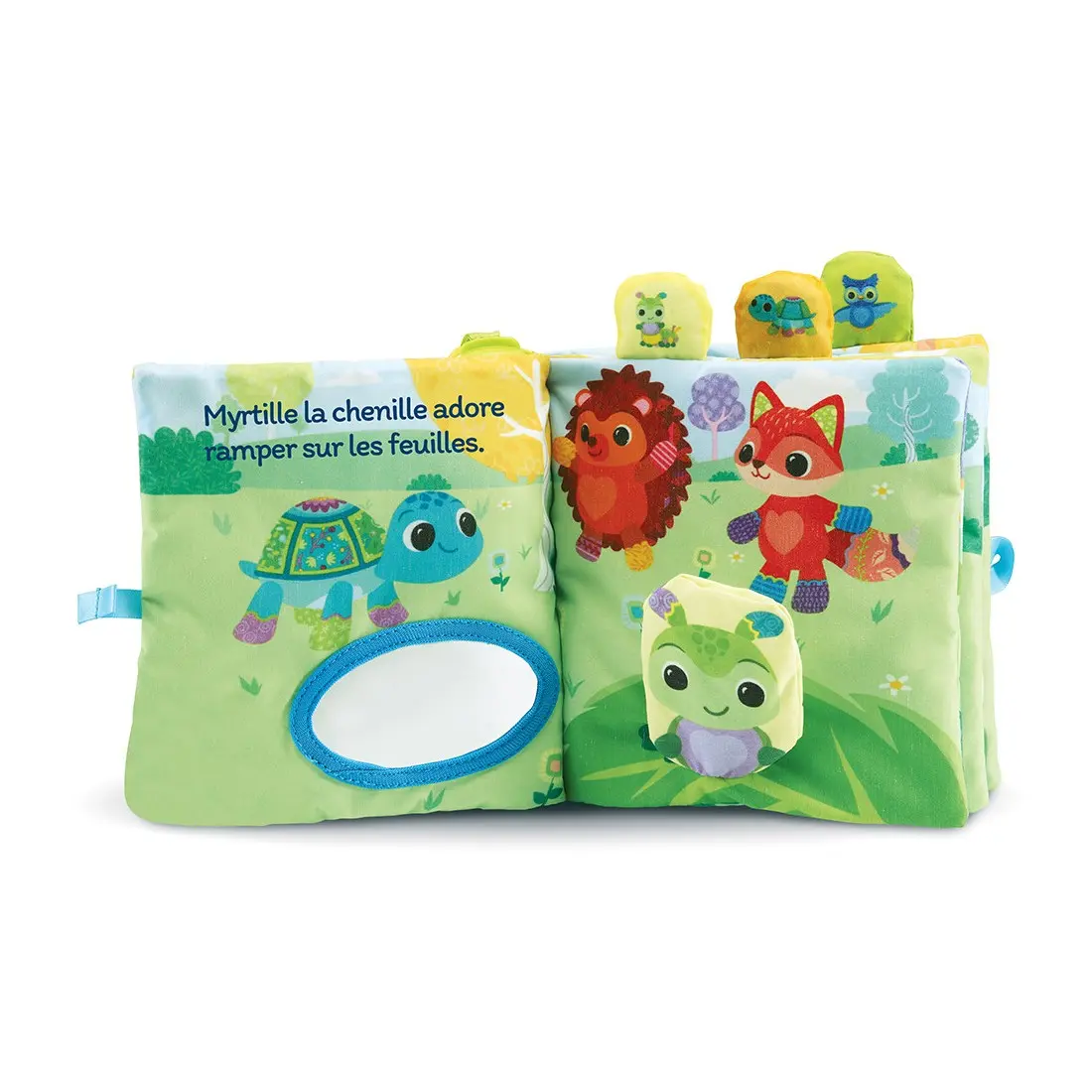 Différents éléments sont à manipuler sur chaque page et aident bébé à construire sa motricité fine : peluche, papier bruissant, marionnette, miroir, anneau de dentition… 3 boutons Animaux pour découvrir des sons amusants, des anecdotes sur les animaux et des chansons.