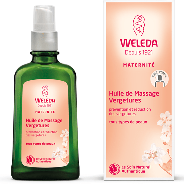 Pour prévenir l’apparition de marques disgracieuses, Weleda conseille à chaque femme d’entretenir l’élasticité de sa peau dès qu’elle se sait enceinte et durant toute sa grossesse en appliquant l’Huile de Massage Vergetures.