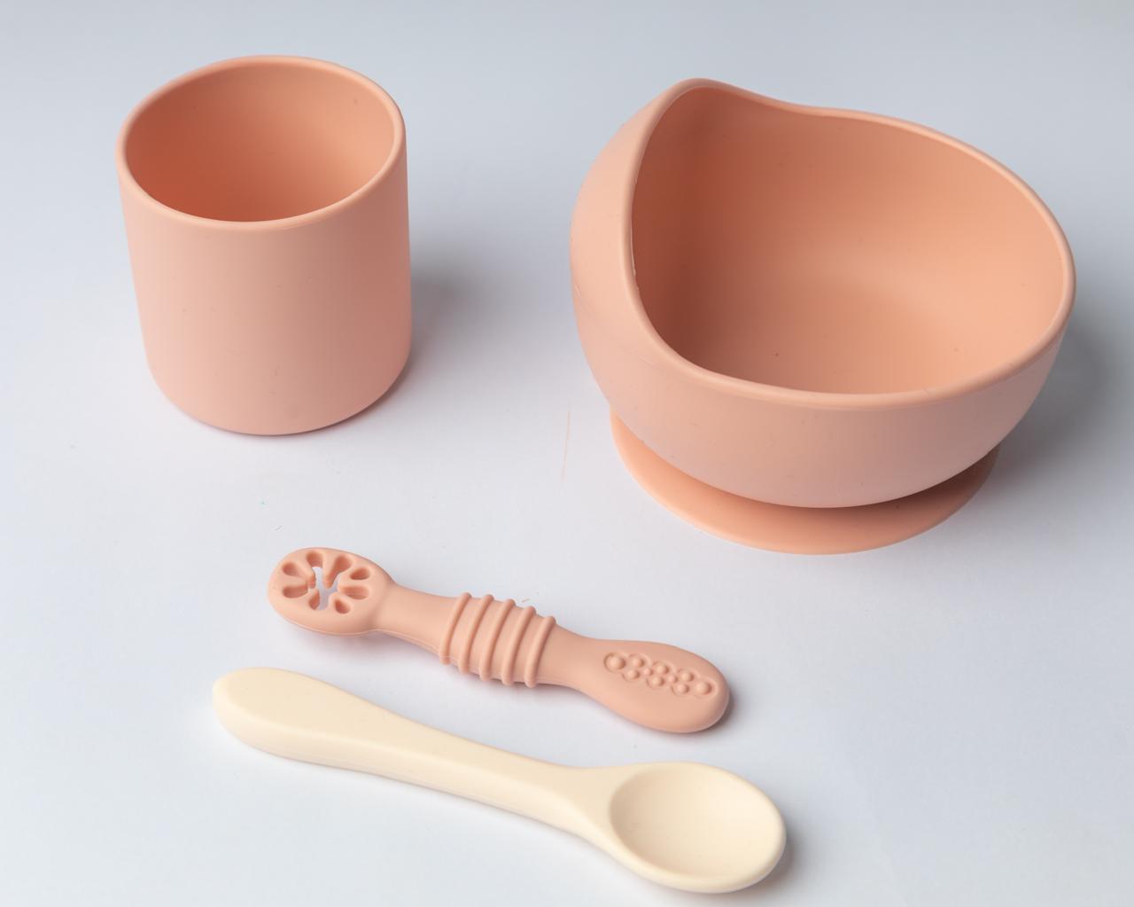 YUMMY Coffret Repas en Silicone – Bol Verre Deux Cuillères – 4M+ Blush
